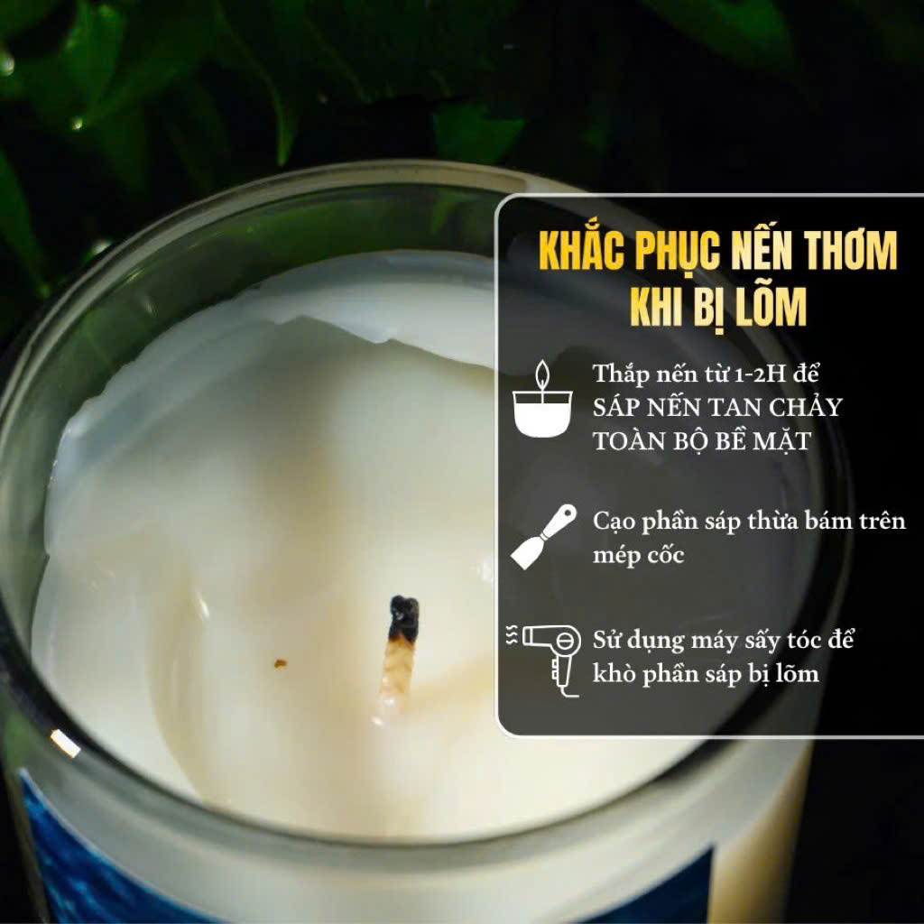 + Những lần sử dụng sau nên thắp nến trong tối thiểu 1h để bề mặt nến tan chảy hoàn toàn. (Nếu không có thể khiến nến xung quanh thành cốc không chảy hết, tạo hốc nến gây lãng phí và mất thẩm mỹ nè)