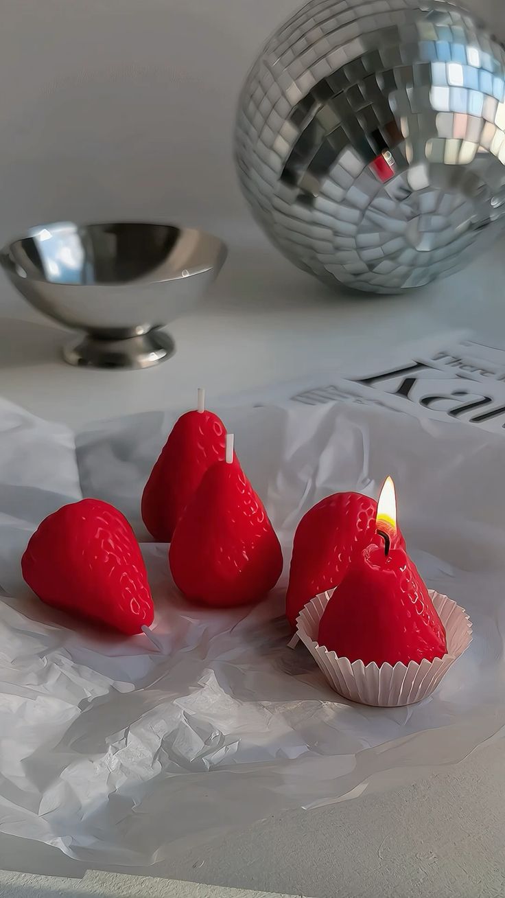 Nến thơm hình dâu tây gây ấn tượng ngay từ cái nhìn đầu tiên với thiết kế mô phỏng trái dâu chín mọng, đỏ tươi bắt mắt cùng cuống lá xanh tươi mát. Bề mặt nến được tạo hình tỉ mỉ với từng hạt dâu nhỏ li ti, khiến sản phẩm trở nên chân thực và cực kỳ đáng yêu.